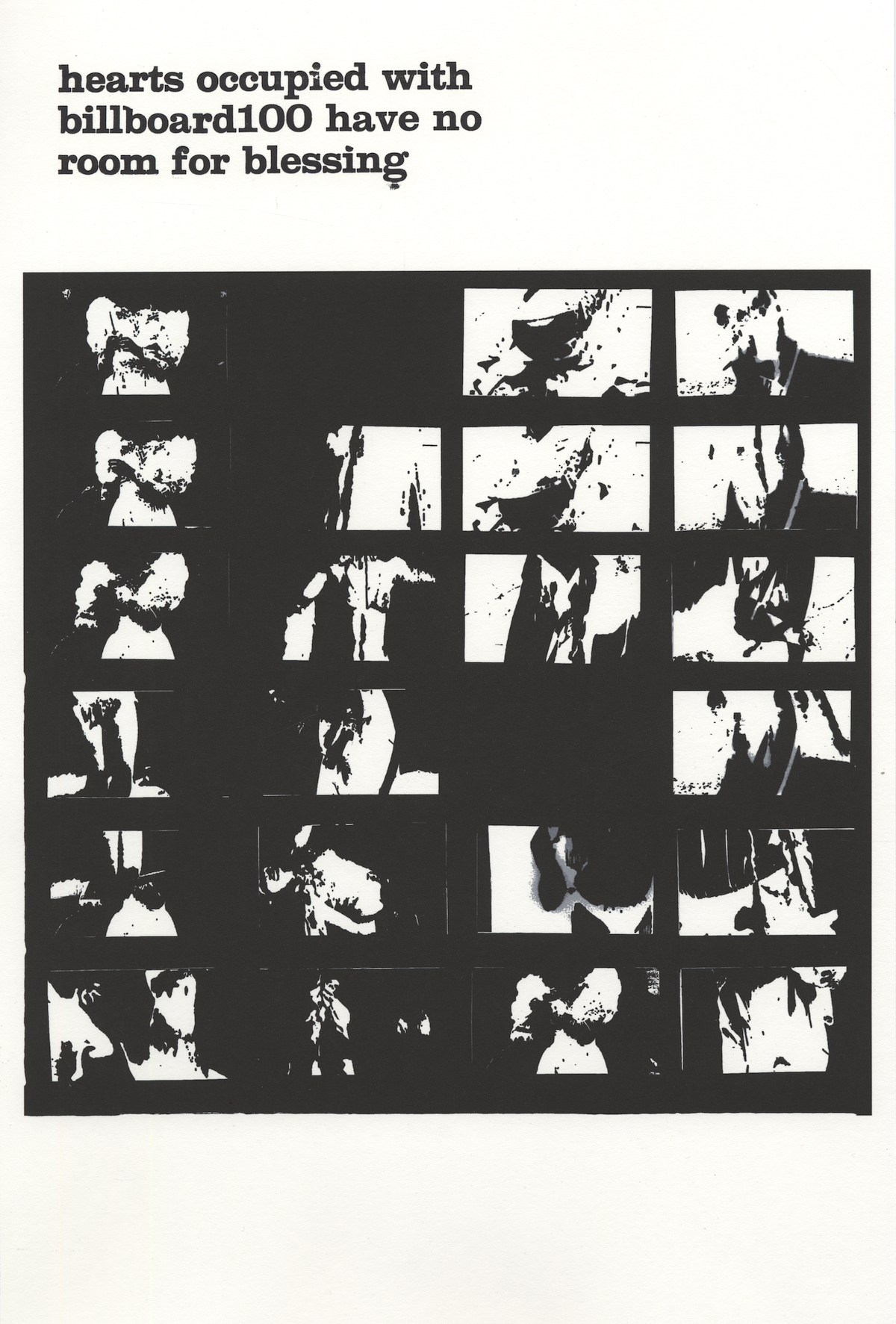Hearts occupied with Billboard100 have no room for Blessing, typeset and inkjet print on paper, 2024.
